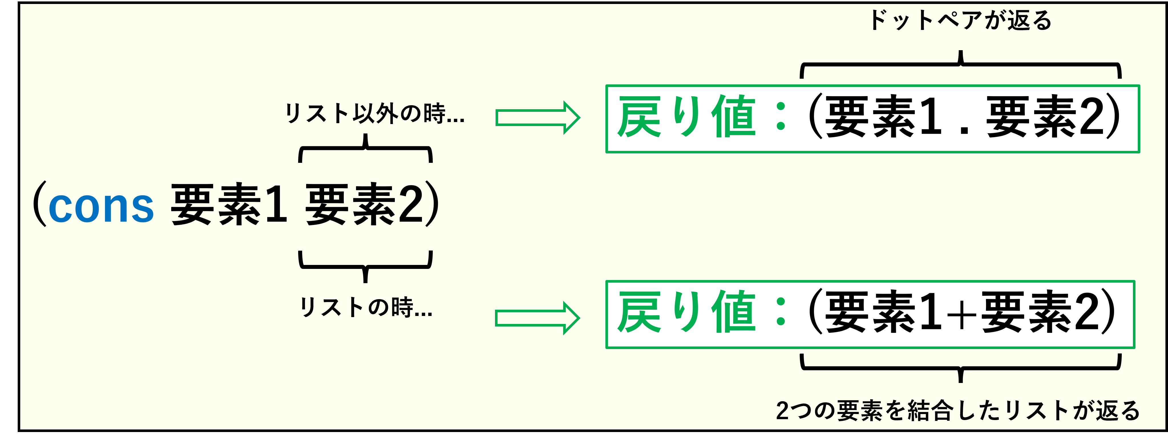 (cons 要素1 要素2) |