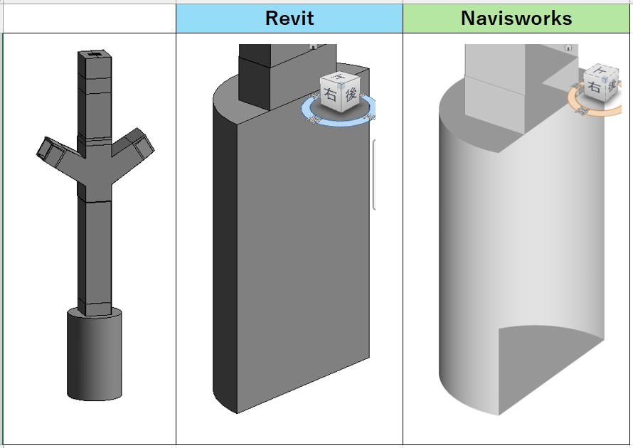 ②Autodesk製品で作成したモデルは基本中身が詰まったソリッドモデルです。しかしNavisに読み込むとモデルの外面だけになり、中身は空洞です。
