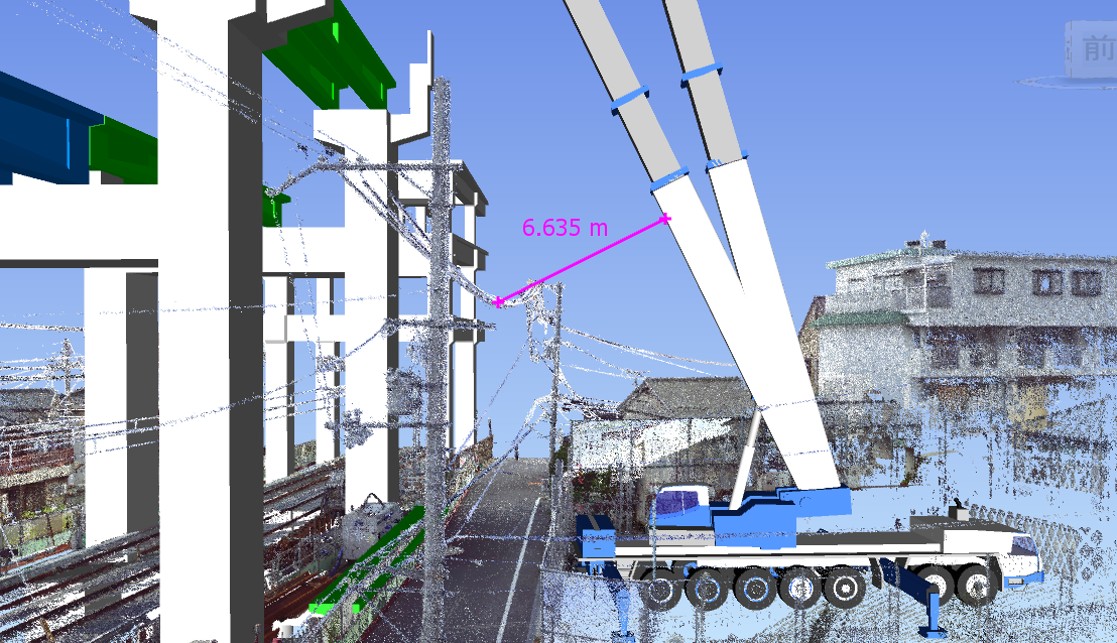 Navisには点群も読み込めます。重いものは全体が表示されるまで数秒かかったり、視点を動かすとチカチカ見えたりしますが、動作は軽いです。点とモデルとの距離も測れます。