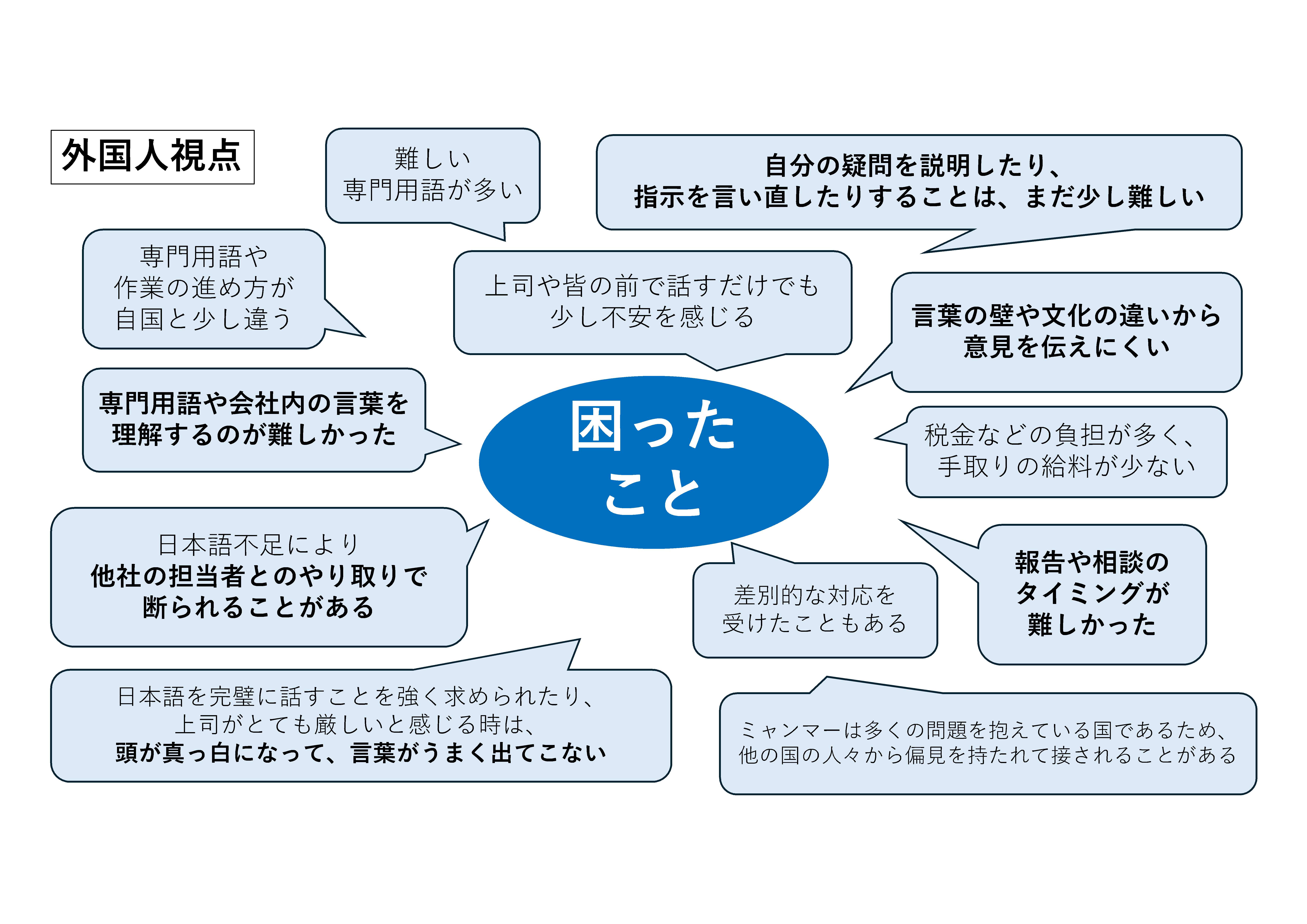 では来日して困ったこともご紹介します。コミュニケーションについての意見が多かったです。