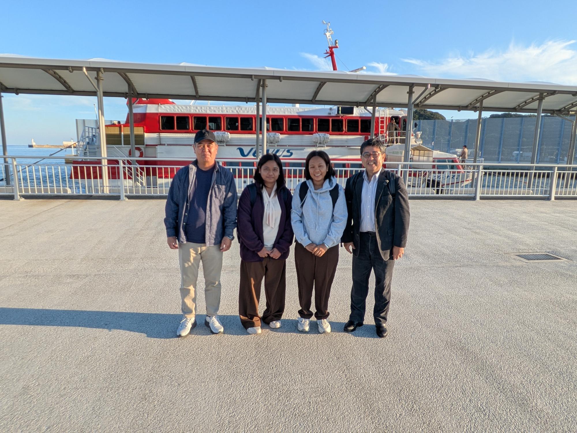 左から、離島の建設会社社長様、ミャンマー人技術者2名、弊社社長
